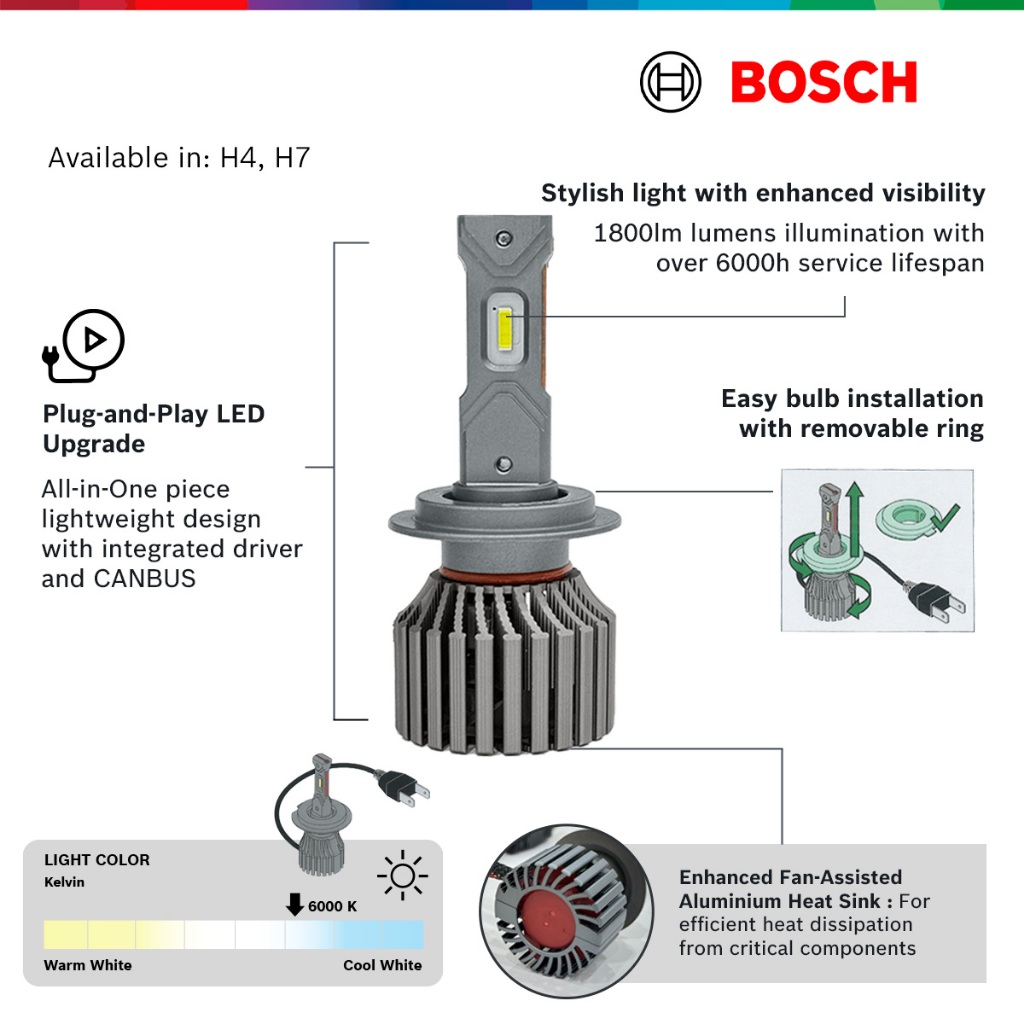 Bosch LED Powerlight Retrofit 6000K Perodua Bezza (2016 - 2019) H7 Car Halogen Headlight Retrofit Bulb